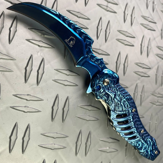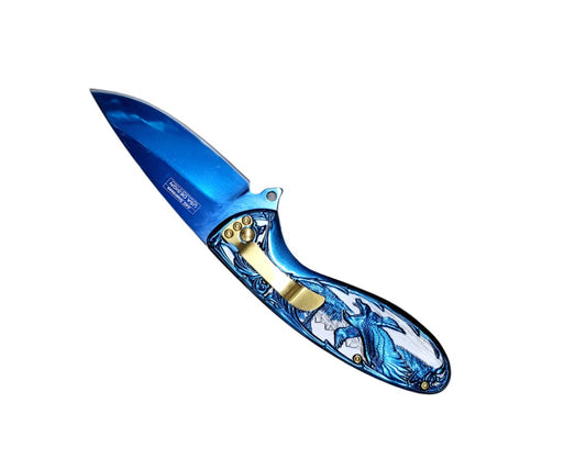 Falcon 8" Eagle Designed Handle Spring Assisted Knife Blue - KS3607BL