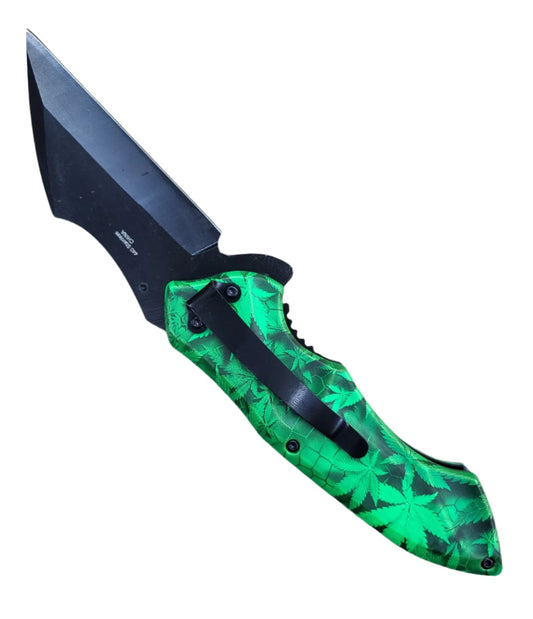 7.75" Spring Assisted Knife Green Marijuana ABS Handle - KS1998MA1