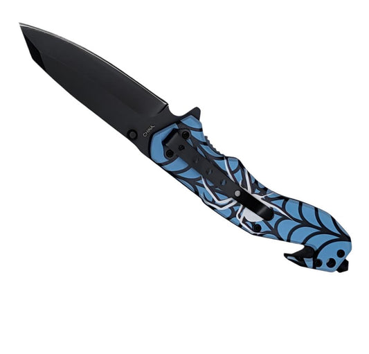 8″ UV Spider Printed ABS Spring Assisted Folding Knife -T27019-13