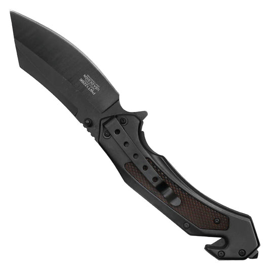 Wartech 8.5" Spring Assisted Pocket Knife with Black Textured Cleaver handle - PWT122BK