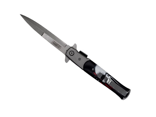 Falcon 9" Spring Assisted Stiletto Knife w/ faux Black Marble Acrylic handle - KS6008RBB