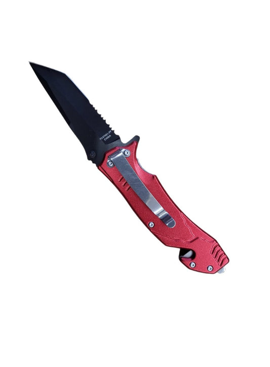8" Spring Assist Fire Department Red Serrated Tanto Blade Pocket Knife - T1047051FF