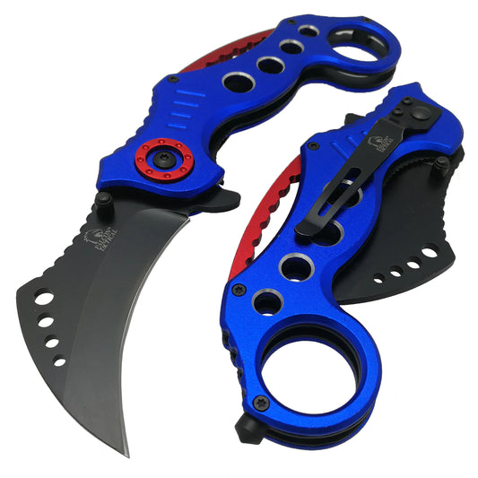 Falcon 7 1/2" Overall Blue and Red Blade Folding Knife - KS3293BL