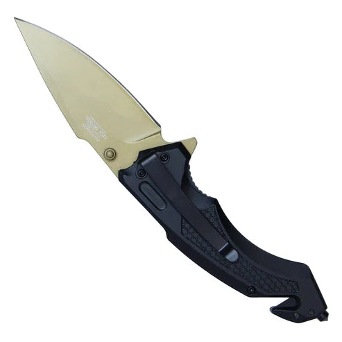 8″ Stainless Steel Spring Assisted Folding Knife w/ Seat Belt Cutter & Glass Breaker - T276291BK