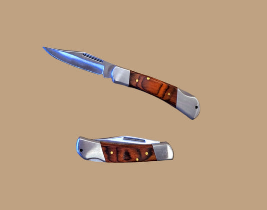6" Folding Knife Brass Boster Wood Handle - T200303