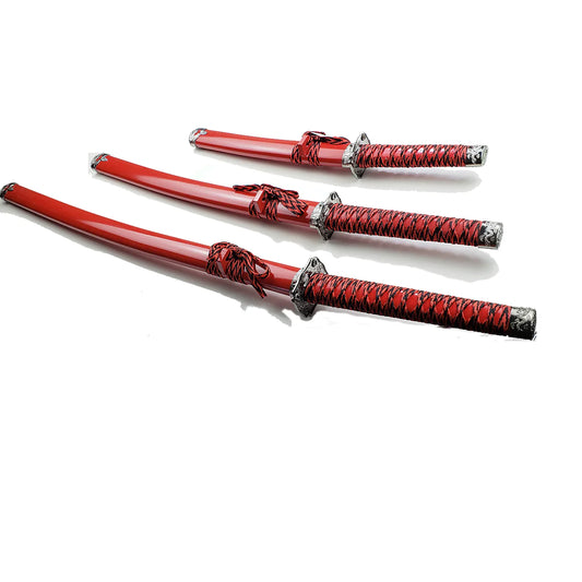 3 pcs Samurai Sword Set with Red plastic scabbard - SA124BD-DG