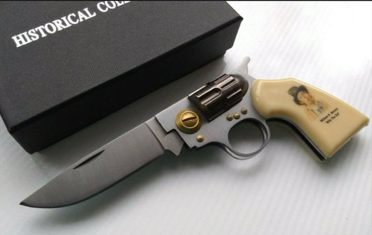 8" Billy the Kid Photo on Handle Gun Style Folding Knife - KB309B-2
