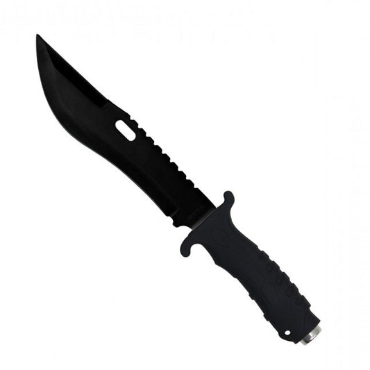 12.75" Black Hunting Knife Rubber Handle w/ Glass Breaker - H-4826-BK