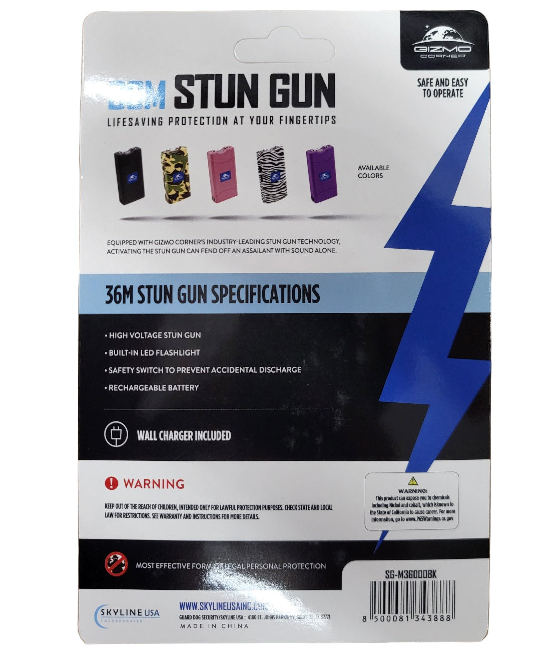 36 Million Volt Black Stun Gun with LED Flashlight and Nylon Carrying Case