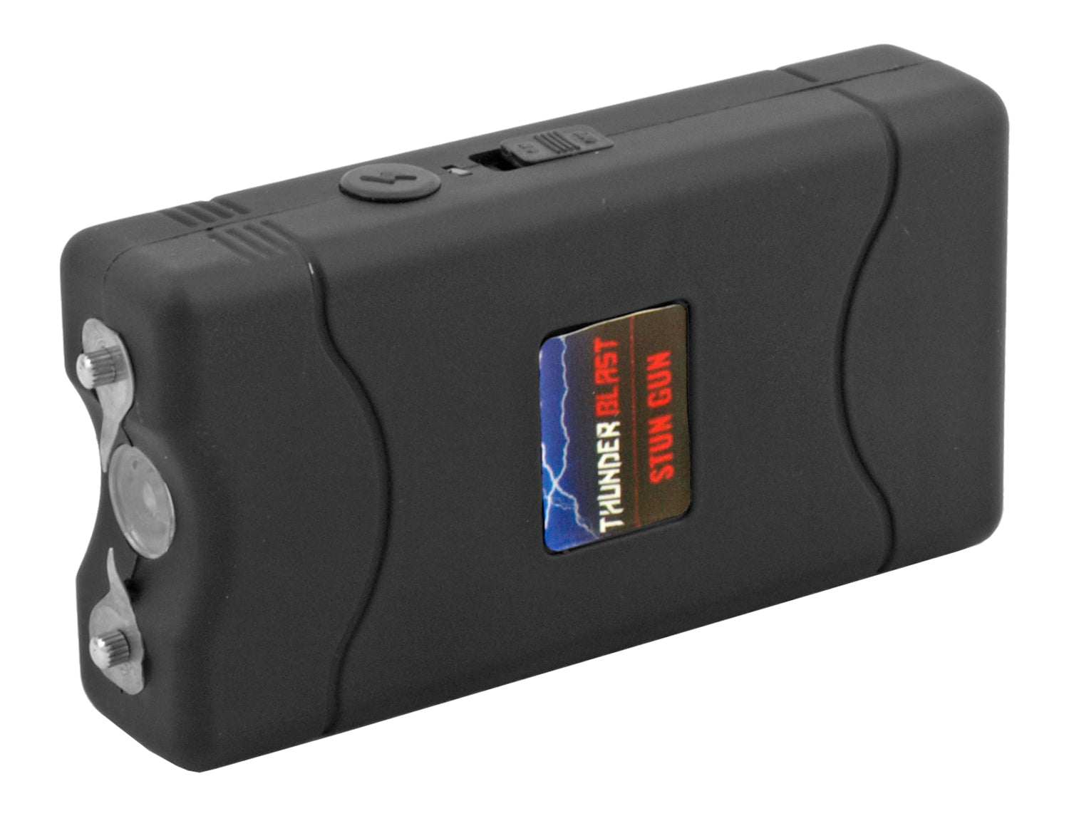 This rubberized stun gun packs a punch with 18M Volts. It features a secure grip and includes a cover for easy storage. An added flashlight feature ensures illumination in low-light situations. All of this safety and security in one device.