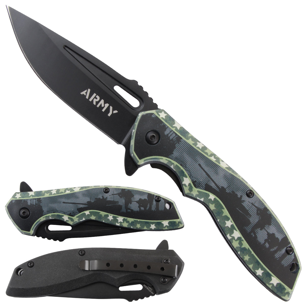 4.5" Spring assisted knife plastic handle with Army 3D print -KS1103AR