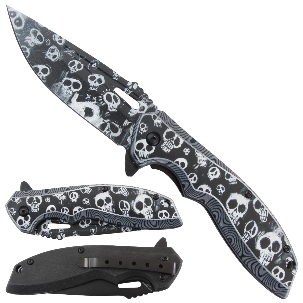 4.5" Spring assisted knife plastic handle with Skull 3D print -KS1103SK