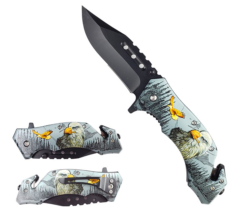 The Spring Assisted Pocket Knife Eagle is a reliable and versatile everyday tool. Its 4.5" stainless steel blade provides exceptional durability, while its spring-assisted opening and bear design provides convenience and style. Perfect for any outdoor enthusiast.