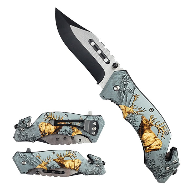 The Spring Assisted Pocket Knife Wolf is a reliable and versatile everyday tool. Its 4.5" stainless steel blade provides exceptional durability, while its spring-assisted opening and Deer design provides convenience and style. Perfect for any outdoor enthusiast.