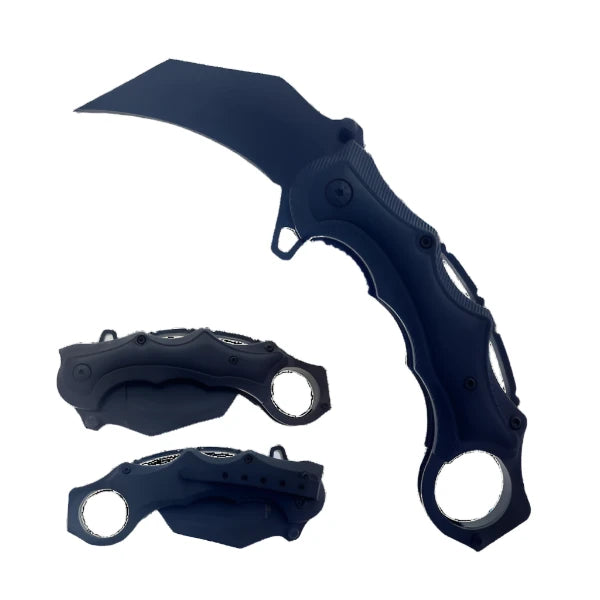 The Karambit 3MM Black blade 4.75" Black ABS handle is an ideal knife for everyday tasks. Its 3MM blade is made from durable black steel for maximum strength and features a 4.75" Black ABS handle for comfort and control. With an overall length of 7", it is easy to store and use for a variety of tasks. The blacksteel blade and handle make it a reliable and dependable knife.