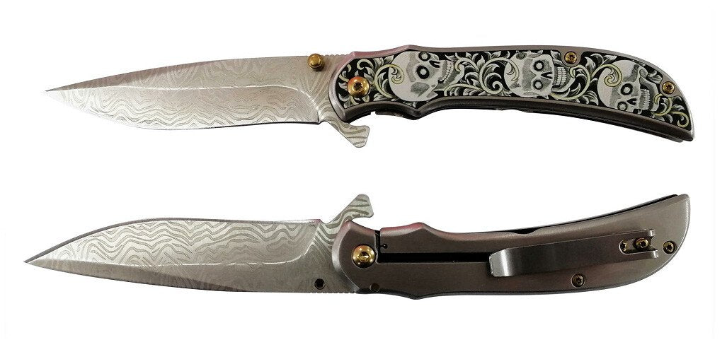 - 8.25″ Stainless Steel Assisted Folding Knife w/ Skull Design