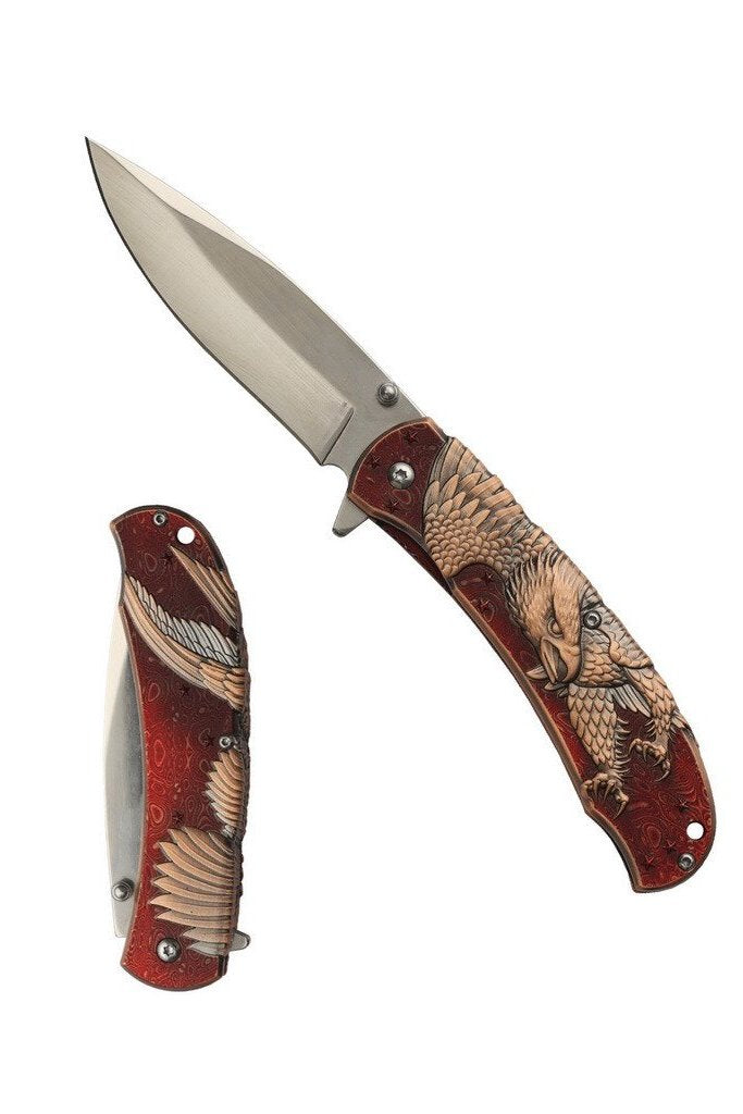 8″ Stainless Steel Assisted Folding Knife w/ 3D Eagle Engrave-Red Bronze - T277290RD