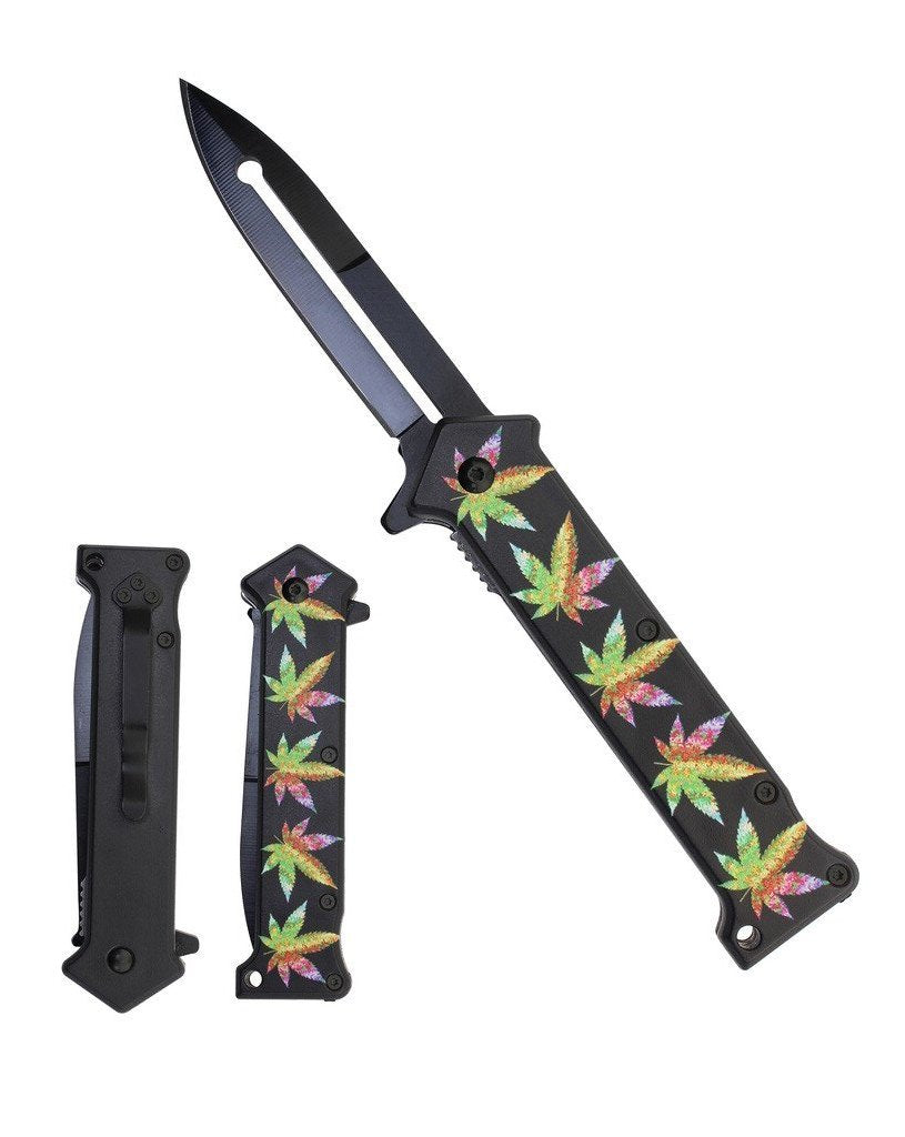 - 8″ UV Printed ABS Spring Assisted Folding Knife (Marijuana Leaf Print)