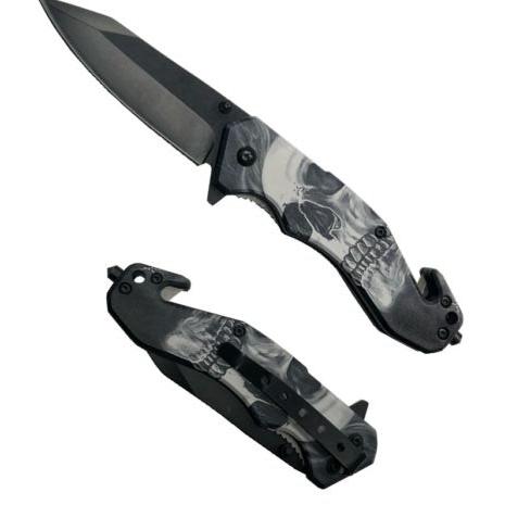 This Knife boasts a 3.5” 420 stainless black coated steel blade and a 4.5” UV printing plastic handle, combining for an overall length of 8”. With a cutter and glass breaker included, users can benefit from the hard-wearing durability and precision of this product. It is perfect for a range of cutting and heavy-duty tasks.