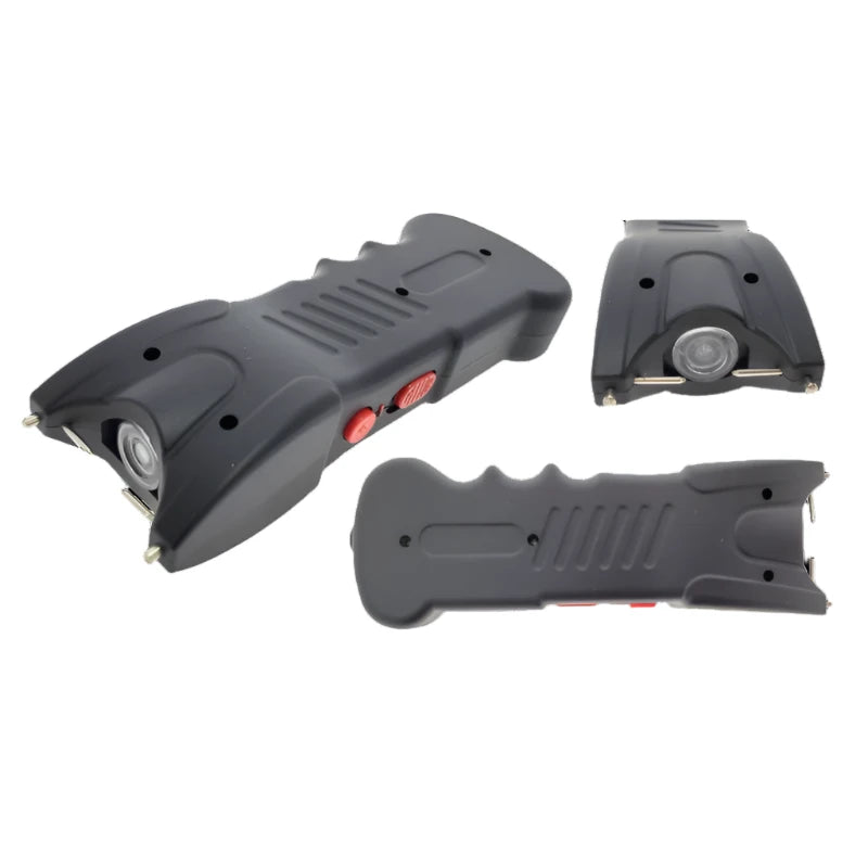 This Black Rechargeable Stun Gun w/ LED Flashlight offers convenience and safety. It has ABS engineering plastic body construction, a handheld stun gun with an output of 1.2M volts, and an integrated LED flashlight. The rechargeable design allows for reliable and convenient use.