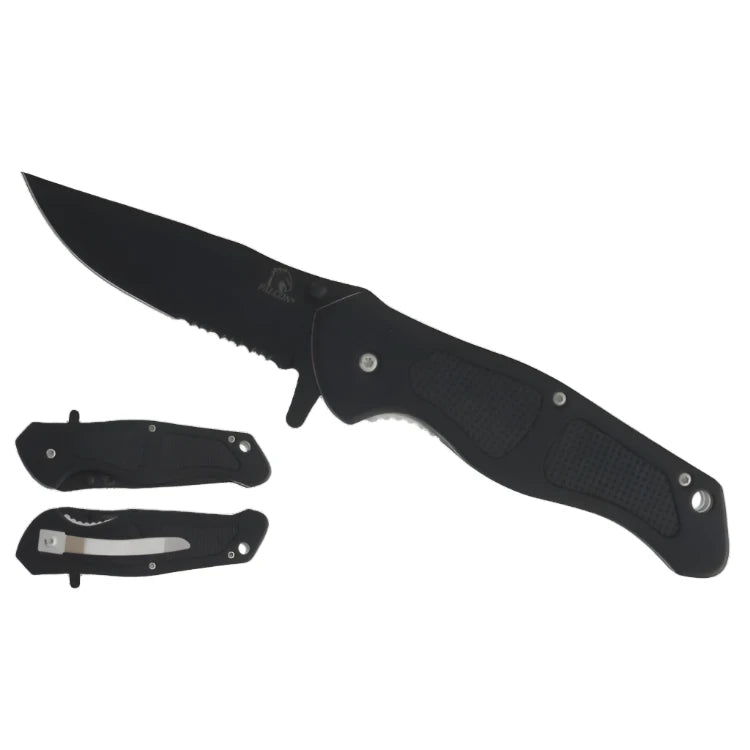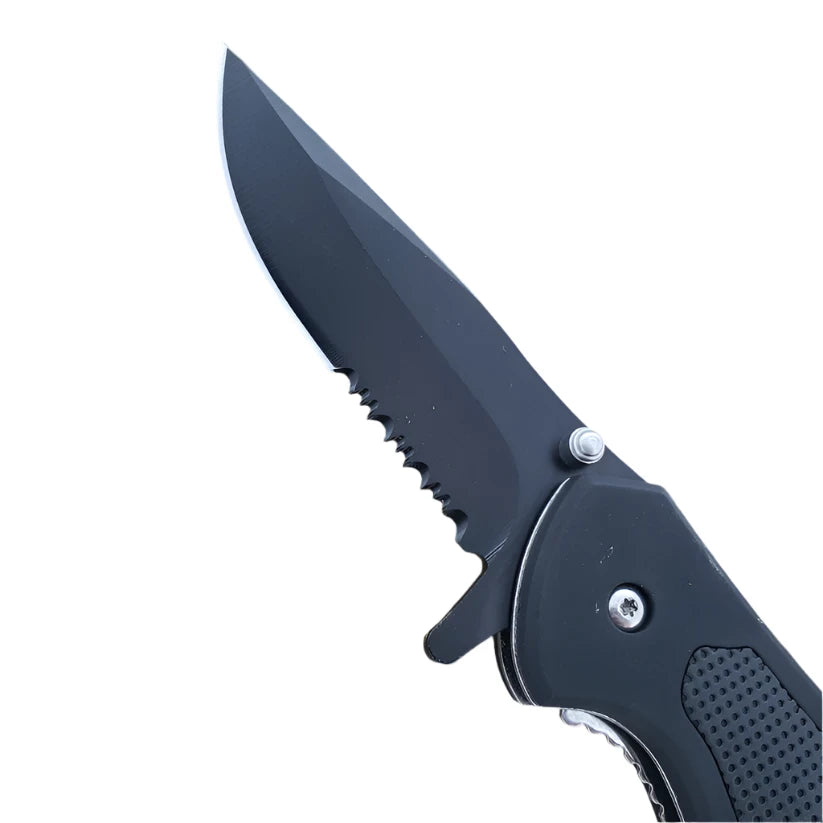 This Falcon spring assisted knife features an overall length of 8 inches and a 3 1/2 inch black coated blade, making it compact yet effective. The rubber handle provides a comfortable and secure grip, making it ideal for everyday use. Expertly designed for precision and durability.