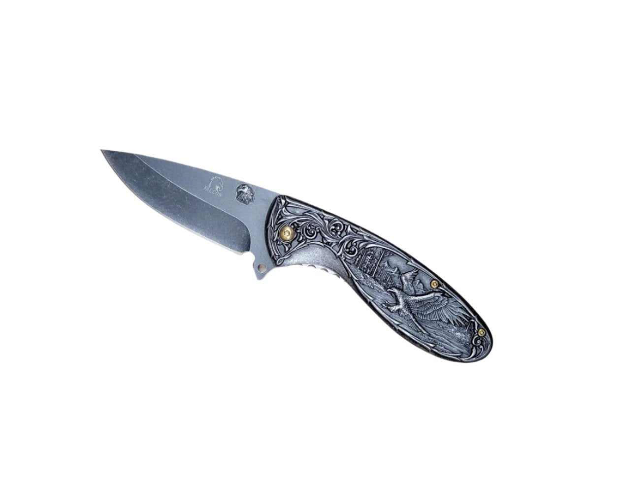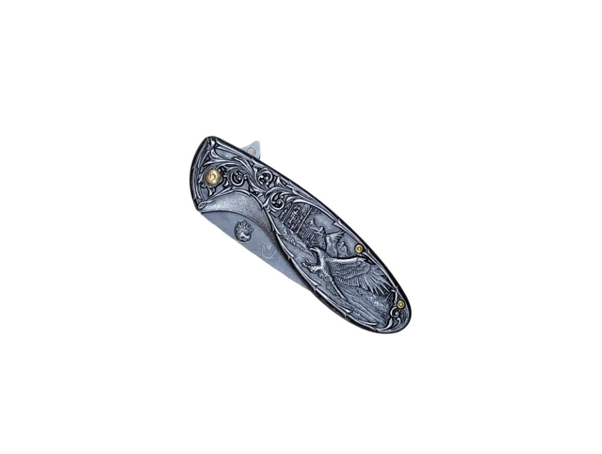 Falcon 8" Eagle Designed Handle Spring Assisted Knife Black - KS3607BK