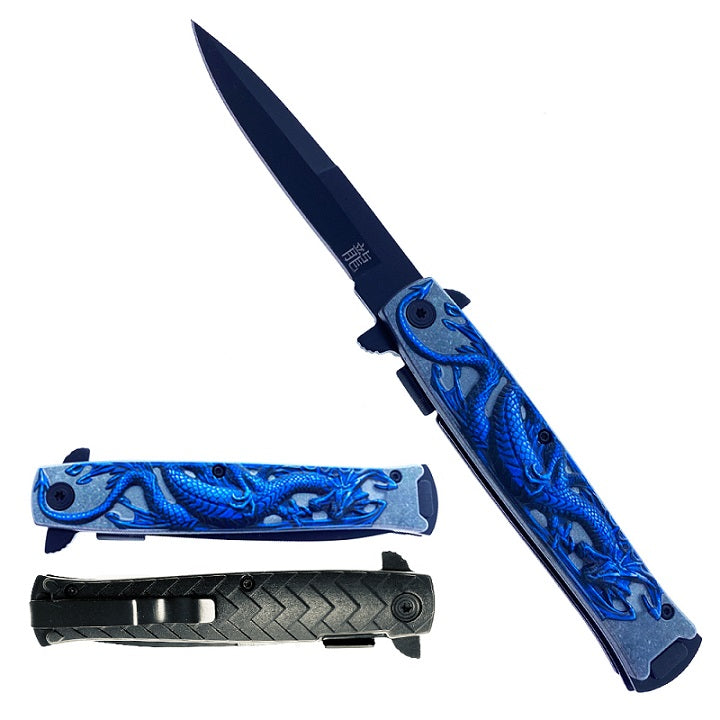 Falcon 8" Overall Spring Assisted Knife W/ Blue Dragon Handle - KS1673BL