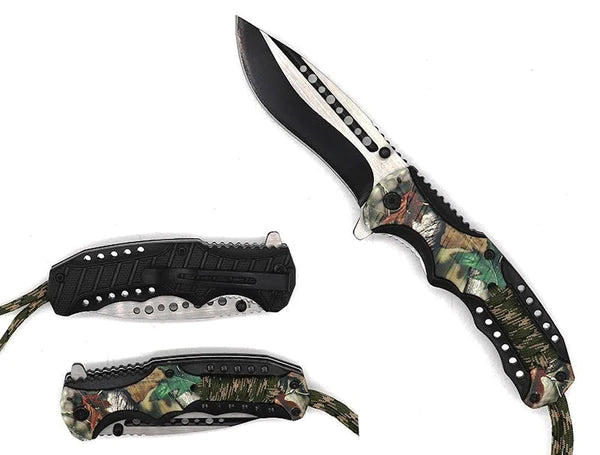 Falcon 8" Spring Assisted Knife Camo Handle w/ paracord - KS32185LV
