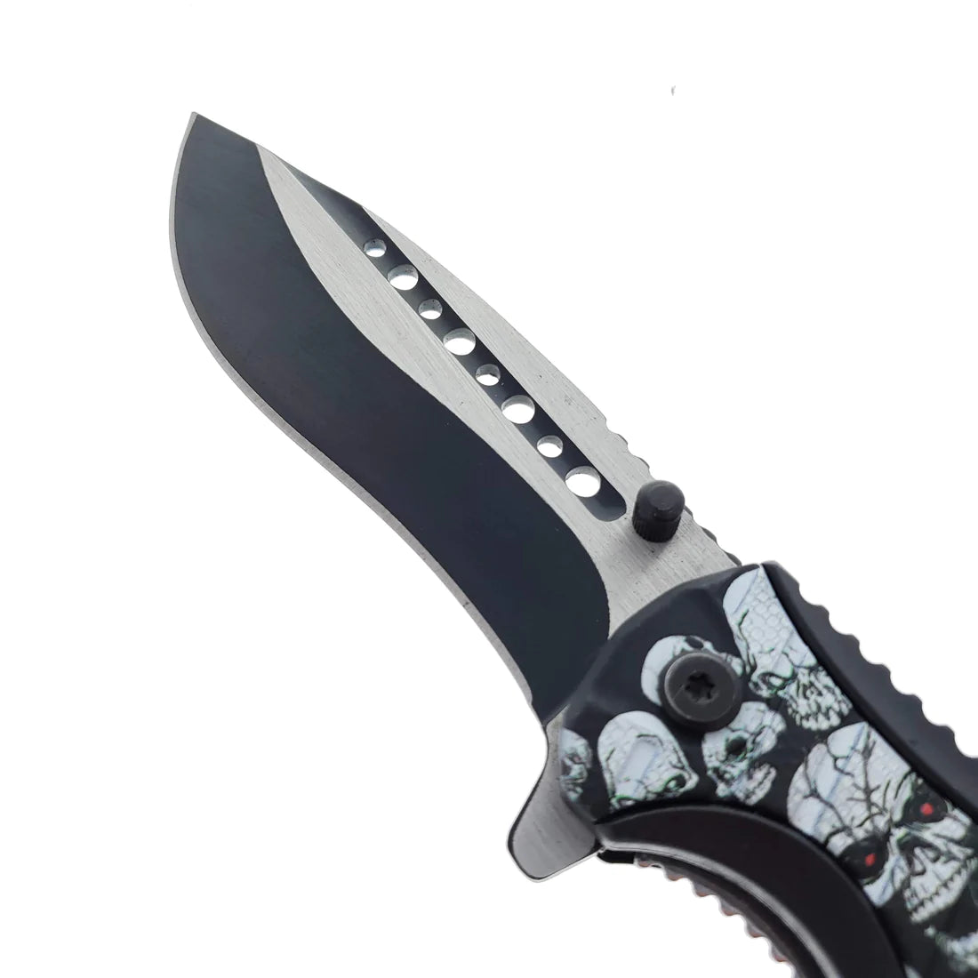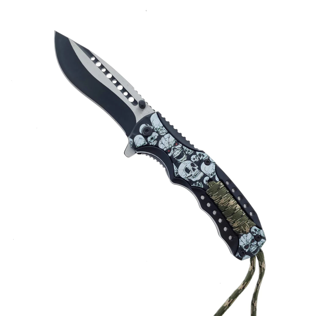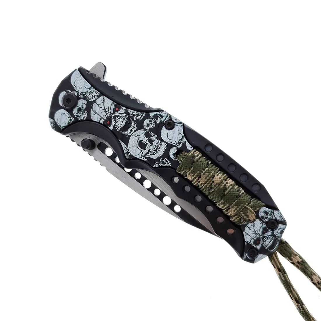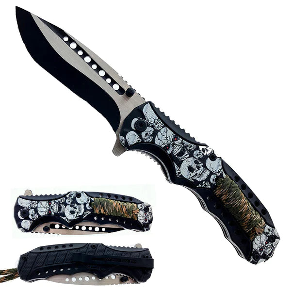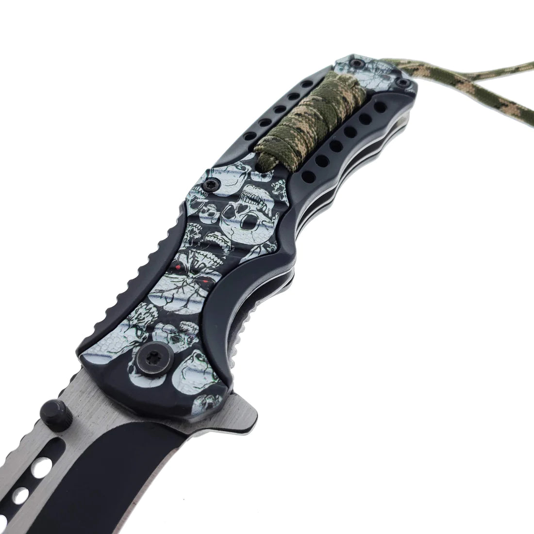 Falcon 8" Spring Assisted Knife Skulls Handle w/ paracord - KS32185BSK
