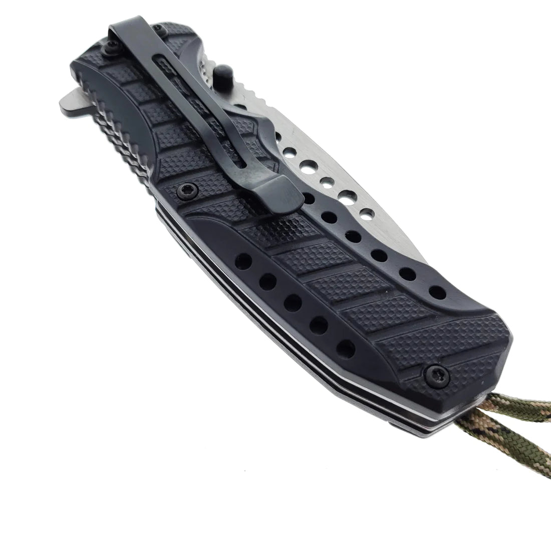 This 8" overall length spring assisted knife features a 3 3/4" black & silver blade for precise cutting and a 4 3/4" handle with paracord for increased grip and durability. With its ultra-sharp blade, this knife is ideal for tackling tasks with confidence.
